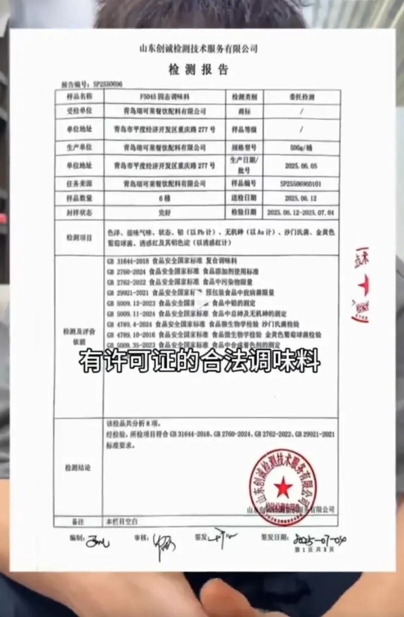 面对质疑,小陈于12月22日发布视频公开回应。主要有三个重要信息:他承认使用了“肉宝王”,但出示了生产许可证,强调产品正规。同时,他表示已主动将调料和鸡肉送检,结果待公布。最后,他承诺未来不再使用此类有争议的配料。