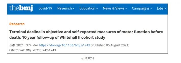 [2]Terminal decline in objective and self-reported measures of motor function before death: 10 year follow-up of Whitehall II cohort study.BMJ 2021;374:n1743
