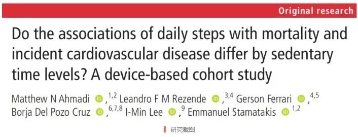 [4]Ahmadi MN, Rezende LFM, Ferrari G, et al. Do the associations of daily steps with mortality and incident cardiovascular disease differ by sedentary time levels? A device-based cohort study British Journal of Sports Medicine2024;58:261-268. https://doi.org/10.1136/bjsports-2023-107221